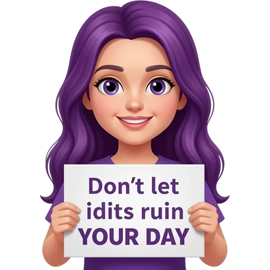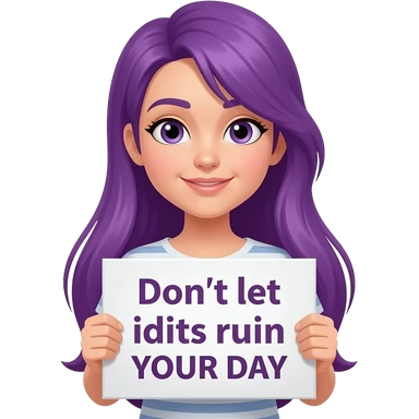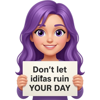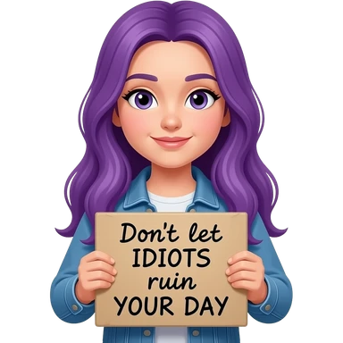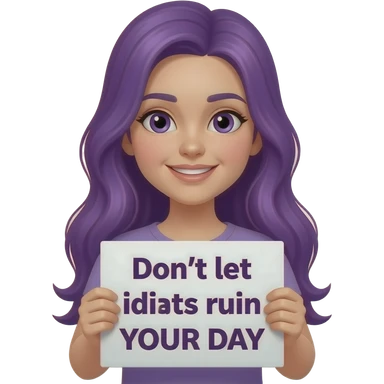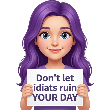 girl with long purple hair holding a Don't let idiots ruin YOUR DAY sign emoji