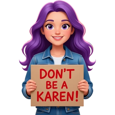 girl with long purple hair holding a Don't be a KAREN! sign emoji