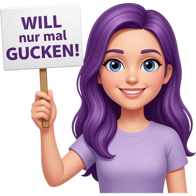 girl with long purple hair holding a WILL nur mal GUCKEN! sign emoji