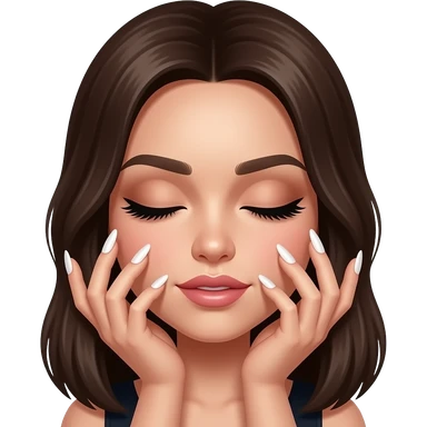 A sassy emoji of a girl with long nails closed eyes with fake lashes realistic lips upside-down eyebrows emoji