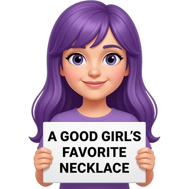 girl with long purple hair holding a A GOOD GIRLS FAVORITE NECKLACE sign emoji