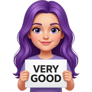 girl with long purple hair holding a You are a GOOD BOY sign emoji
