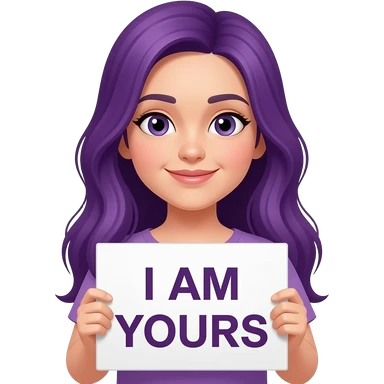 girl with long purple hair holding a I AM YOURS sign emoji