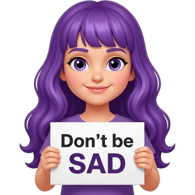 girl with long purple hair holding a I don't do REVENGE I ignore prople sign emoji | AI Emoji Generator