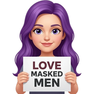 girl with long purple hair holding a LOVE MASKED MEN sign emoji