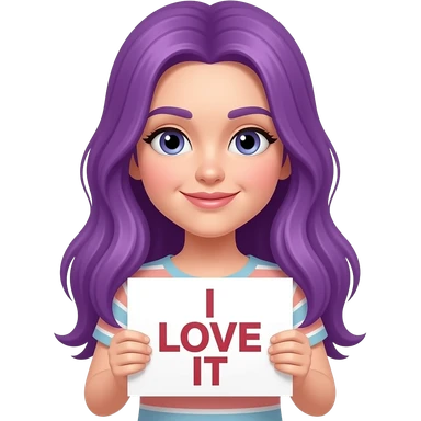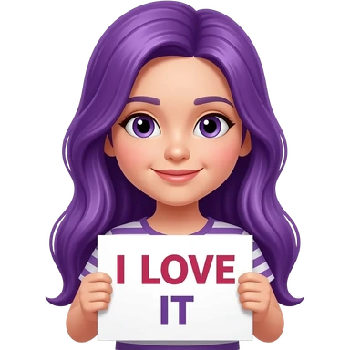 girl with long purple hair holding a I LOVE IT sign emoji