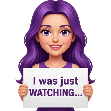 sexy girl with long purple hair holding a I was just WATCHING... sign emoji