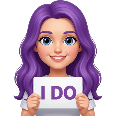 girl with long purple hair holding a I DO sign emoji