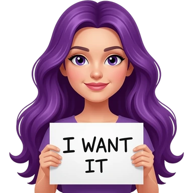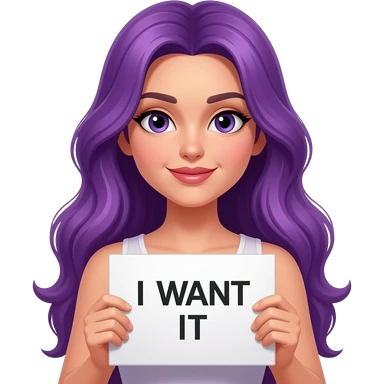 sexy girl with long purple hair holding a I WANT IT sign emoji