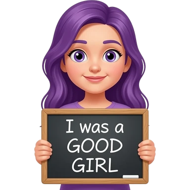 girl with long purple hair holding a I was a GOOD GIRL sign emoji