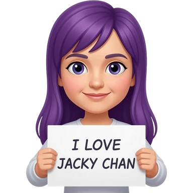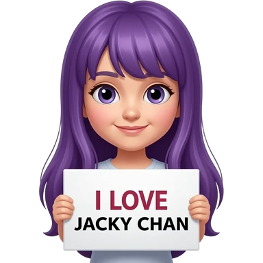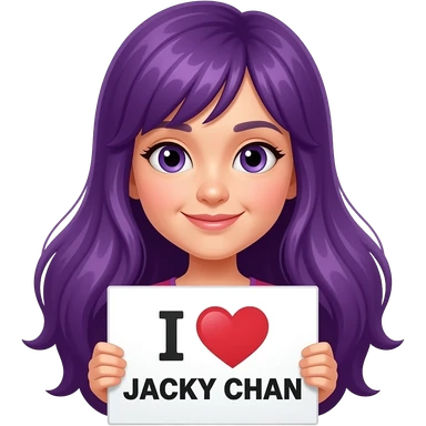 girl with long purple hair holding a I LOVE JACKY CHAN sign emoji