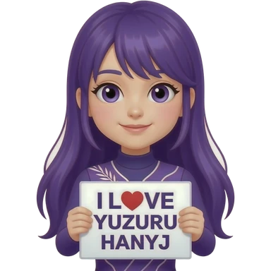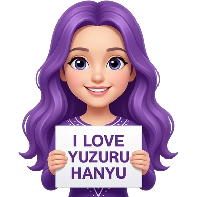 girl with long purple hair holding a I LOVE YUZURU HANYU sign emoji