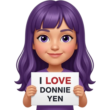 girl with long purple hair holding a I LOVE DONNIE YEN sign emoji