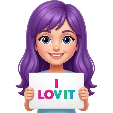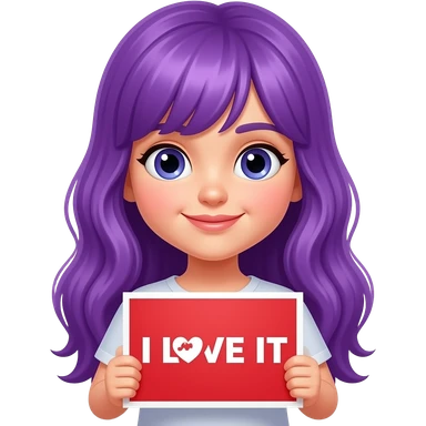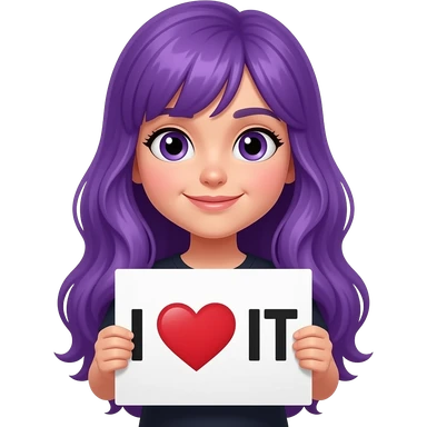 girl with long purple hair holding a I LOVE YOUR SHIT sign emoji