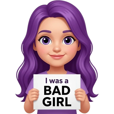 girl with long purple hair holding a I was a BAD GIRL sign emoji