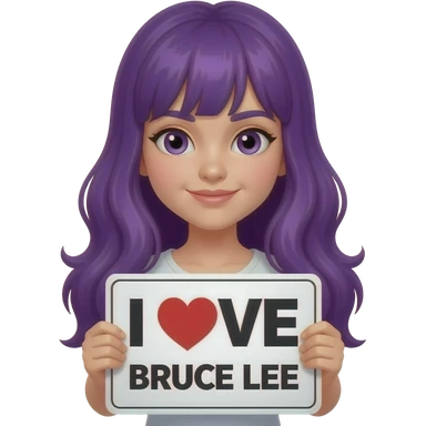 girl with long purple hair holding a I LOVE BRUCE LEE sign emoji