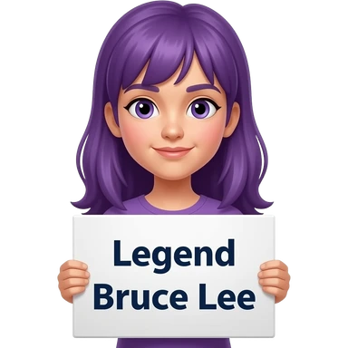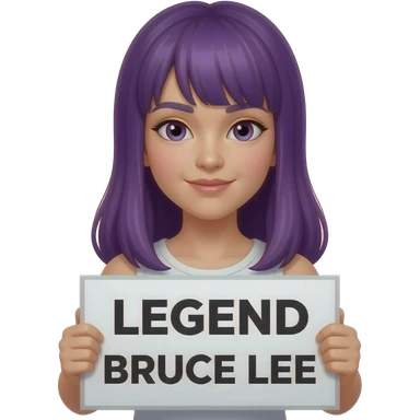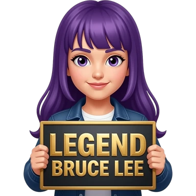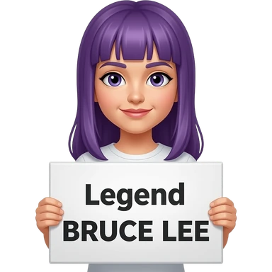 girl with long purple hair holding a Legend BRUCE LEE sign emoji