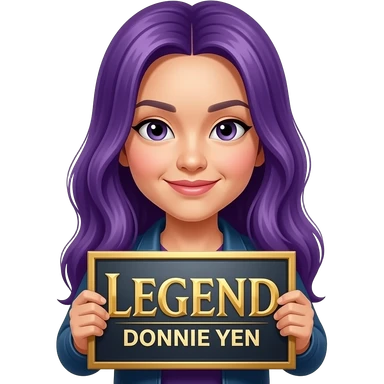 girl with long purple hair holding a Legend DONNIE YEN sign emoji