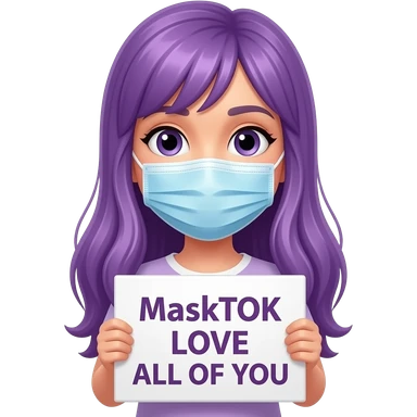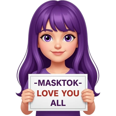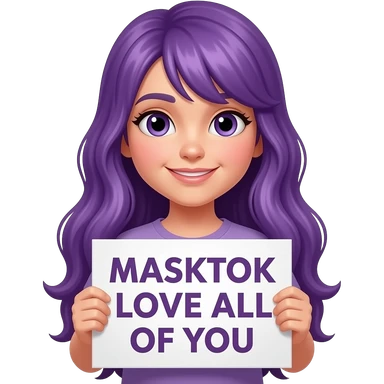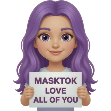 girl with long purple hair holding a MASKTOK LOVE ALL OF YOUsign emoji