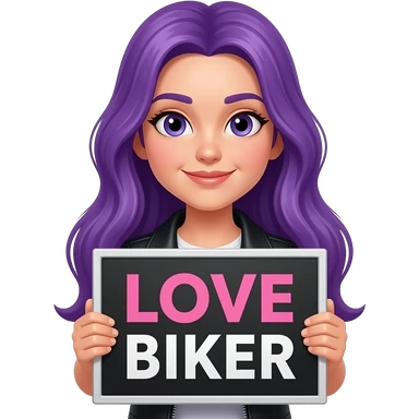girl with long purple hair holding a LOVE BIKER sign emoji