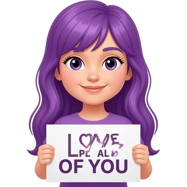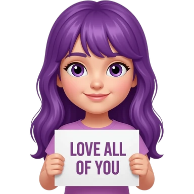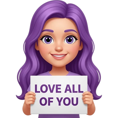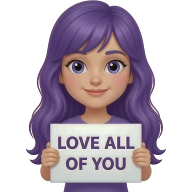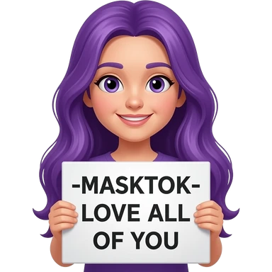girl with long purple hair holding a -MASKTOK- LOVE ALL OF YOUsign emoji