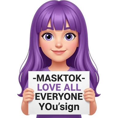 girl with long purple hair holding a -MASKTOK- LOVE ALL EVERYONE YOUsign emoji