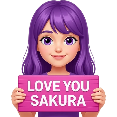 girl with long purple hair holding a LOVE YOU SAKURA sign emoji