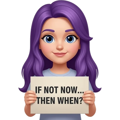 girl with long purple hair with a IF NOT NOW... THEN WHEN? sign emoji
