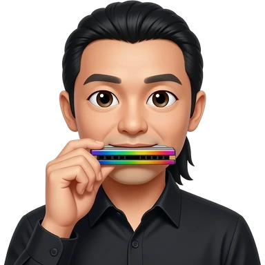 Chinese man with long pony tail and black shirt with chromatic harmonica -- https://now.tufts.edu/sites/default/files/uploaded-assets/images/2024-11/241113_leon_li.jpg emoji