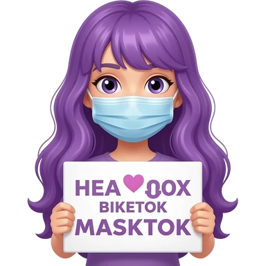 girl with long purple hair holding a MASKTOK LOVE ALL OF YOUsign emoji | AI Emoji Generator