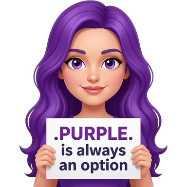 girl with long purple hair holding a PURPLE is always an OPTION sign emoji | AI Emoji Generator