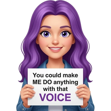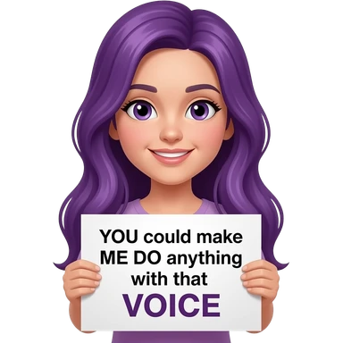 girl with long purple hair holding a YOU could make ME DO anything with that VOICEsign emoji