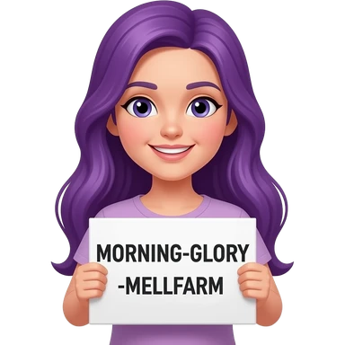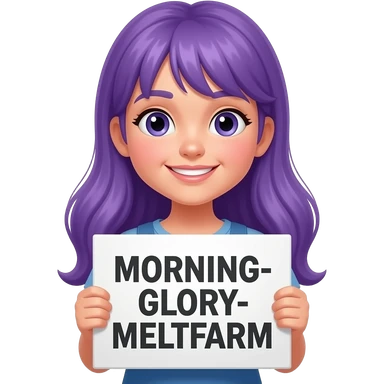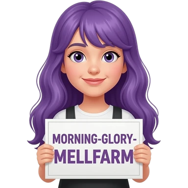girl with long purple hair with a MORNING-GLORY-MELKFARM sign emoji