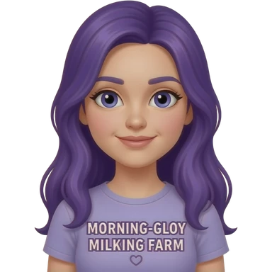 girl with long purple hair with a MORNING-GLORY MILKING FARM sign emoji