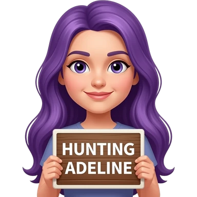 girl with long purple hair with a HUNTING ADELINE sign emoji
