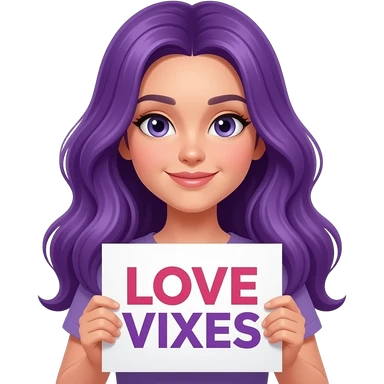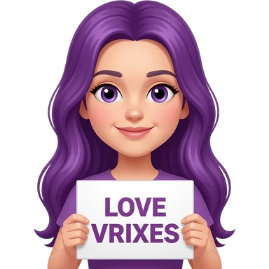 girl with long purple hair with a LOVE VRIXES sign emoji