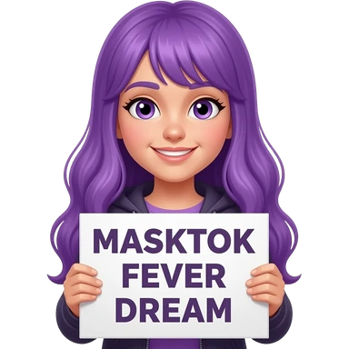 girl with long purple hair with a MASKTOK FEVER DREAM sign emoji