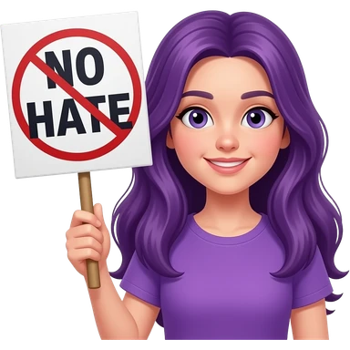 girl with long purple hair with a NO HATE sign emoji