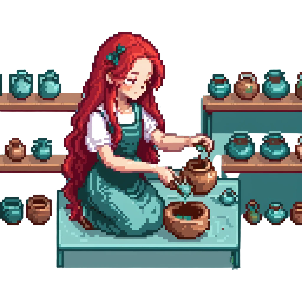 girl with long red hair making pottery illustration | AI Emoji Generator