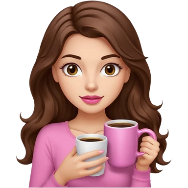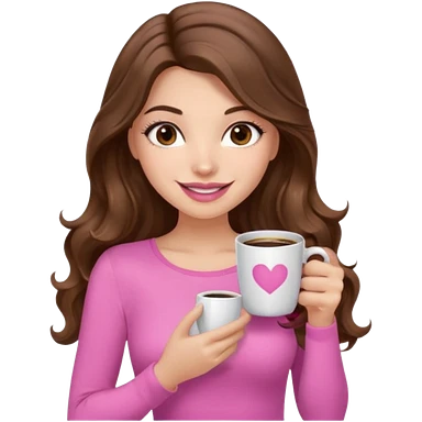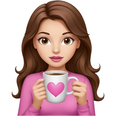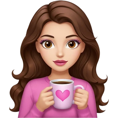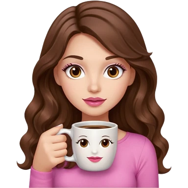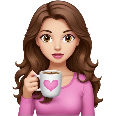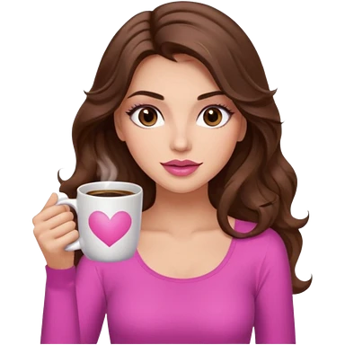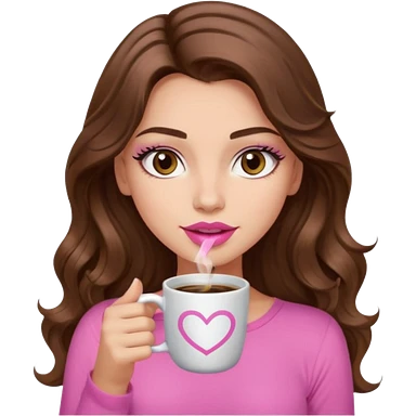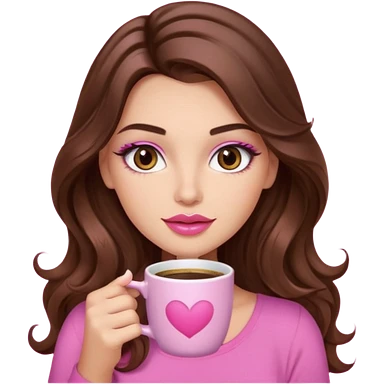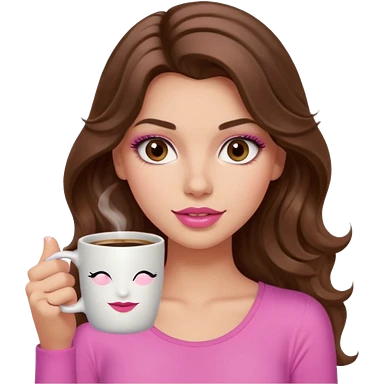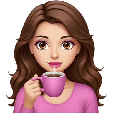 girl with long wavy brown hair, brown eyes, light to medium complexion, in a pink sexy top, pink lips, long lashes sipping coffee emoji | AI Emoji Generator