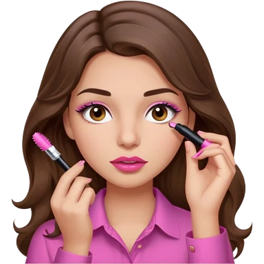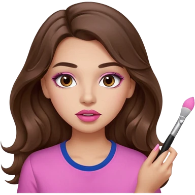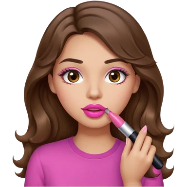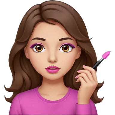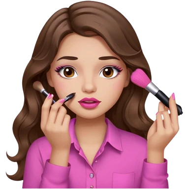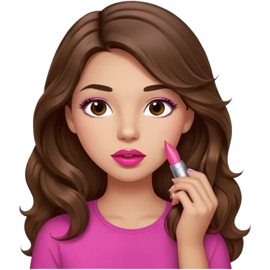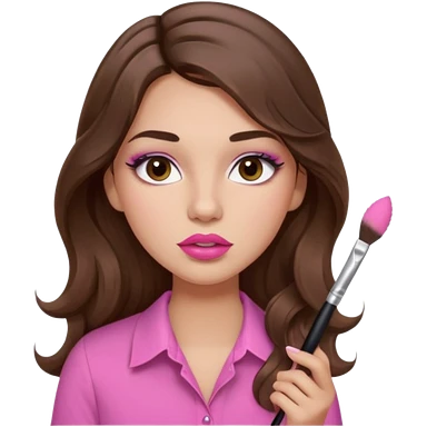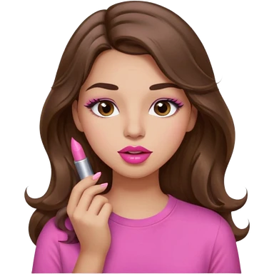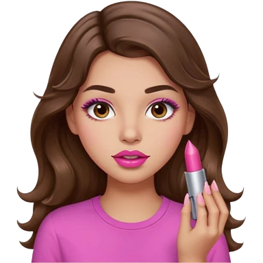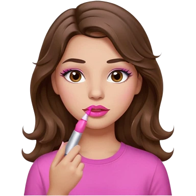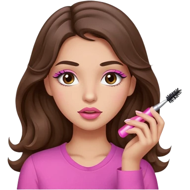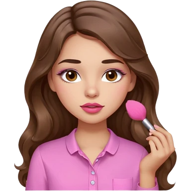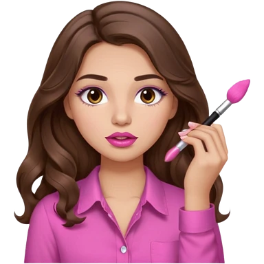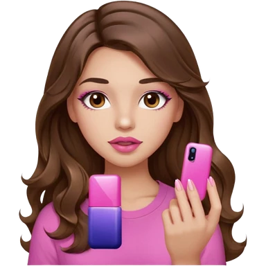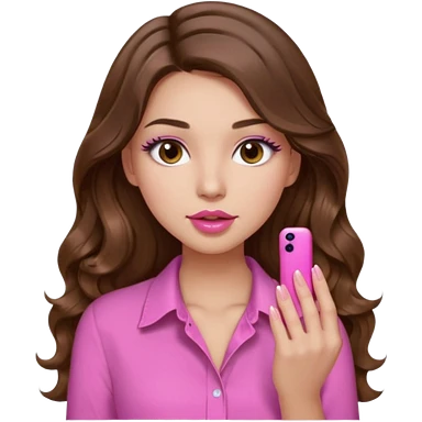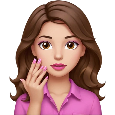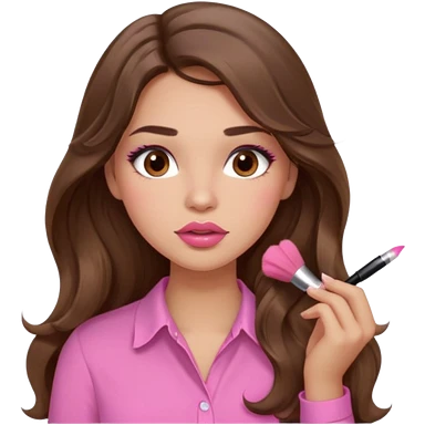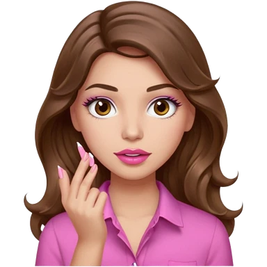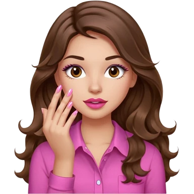 girl with long wavy brown hair, brown eyes, light to medium complexion, in a pink shirt, pink lips, long lashes, puckered lips, hallelujah emoji | AI Emoji Generator