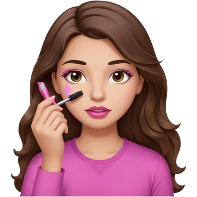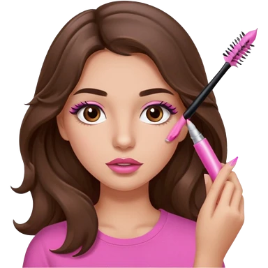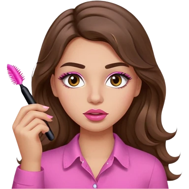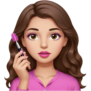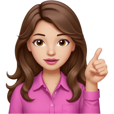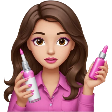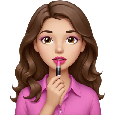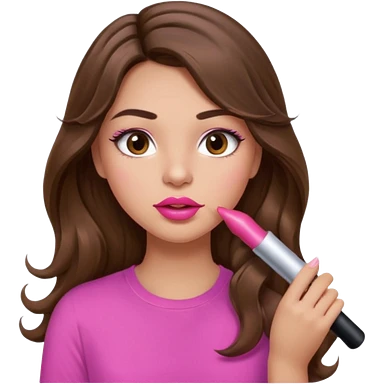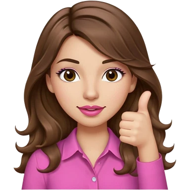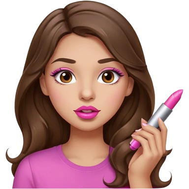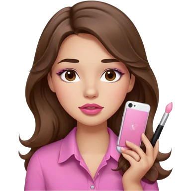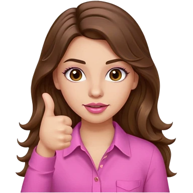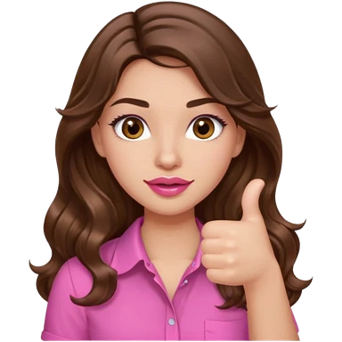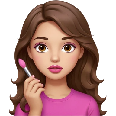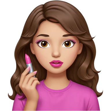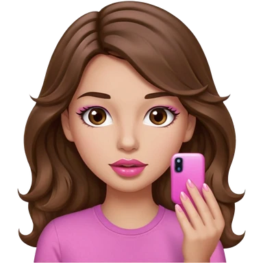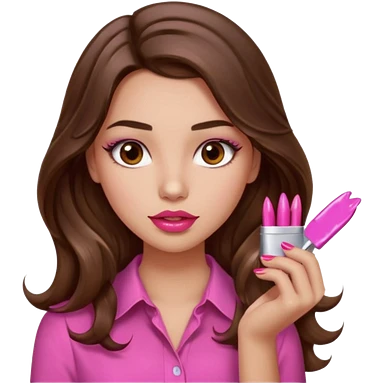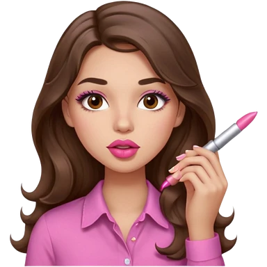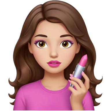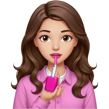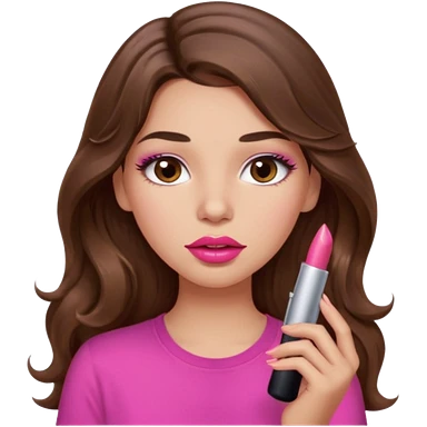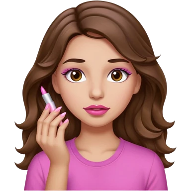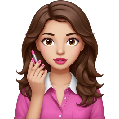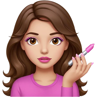 girl with long wavy brown hair, brown eyes, light to medium complexion, in a pink shirt, pink lips, long lashes, puckered lips, painting long nails emoji | AI Emoji Generator