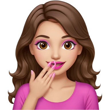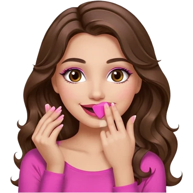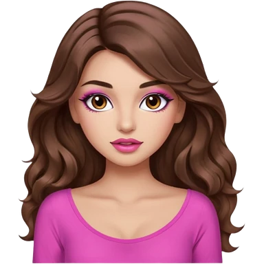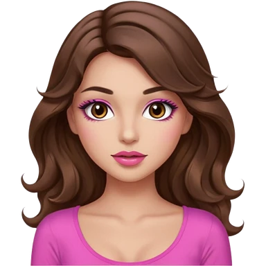 girl with long wavy brown hair, brown eyes, long lashes makeup, sexy pink lips, light to medium complexion, pink sexy top, dancing, sparkling emoji | AI Emoji Generator