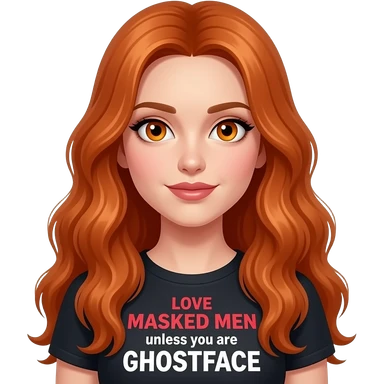 sexy girl with overlong ginger hair and ginger eyes wearing a top with LOVE MASKED MEN unless you are GHOSTFACE written on it emoji