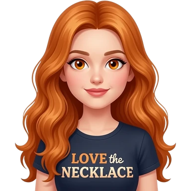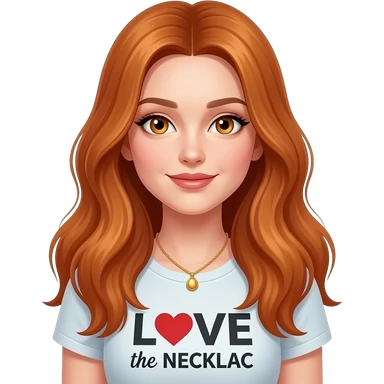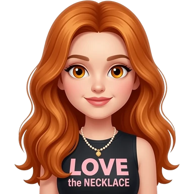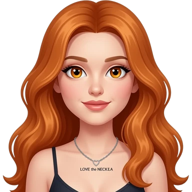 sexy girl with overlong ginger hair and ginger eyes a top with LOVE the NECKLACE written on it emoji