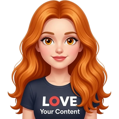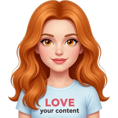 sexy girl with overlong ginger hair and ginger eyes a top with LOVE your content written on it emoji