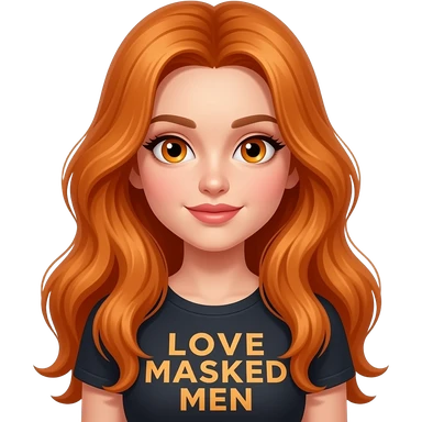 sexy girl with overlong ginger hair and ginger eyes wearing a top with LOVE MASKED MEN written on it emoji