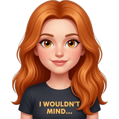sexy girl with overlong ginger hair and ginger eyes a top with I WOULDN'T MIND... written on it emoji