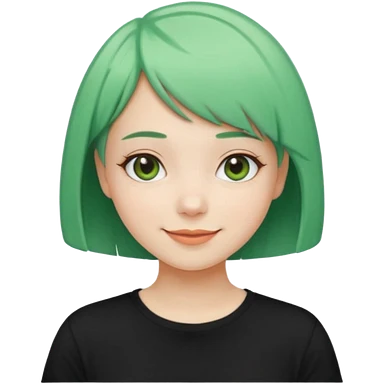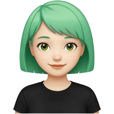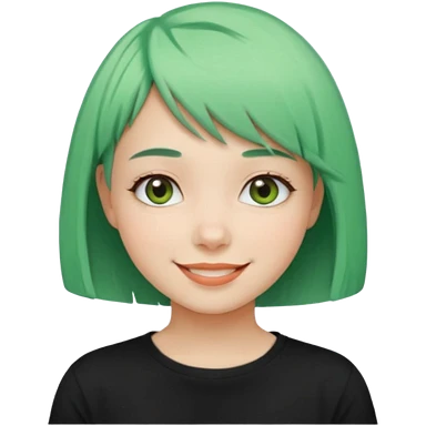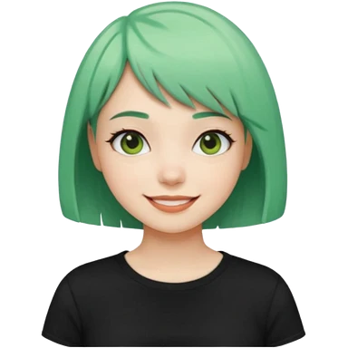 Girl with Mint Bob Cut – short green hair, cheerful smile, black t-shirt emoji