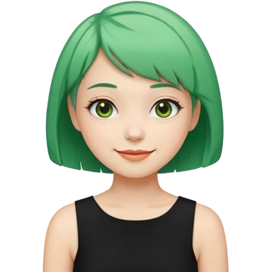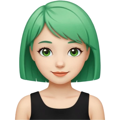 Girl with Mint Bob Cut – short green hair, cheerful smile, black dress emoji
